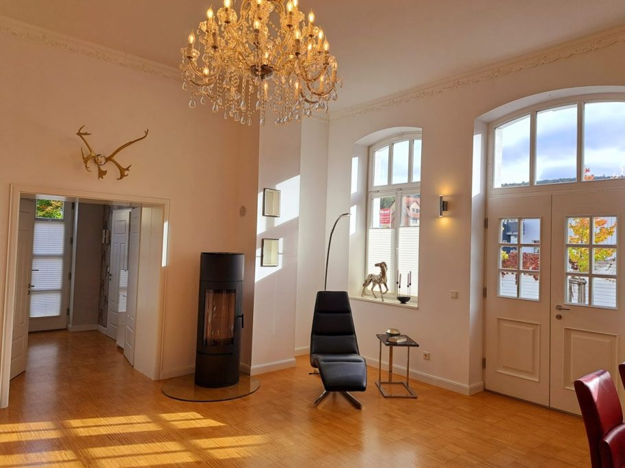 - Fußbodenheizung & Kaminofen im Wohnzimmer