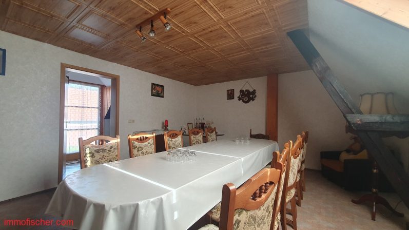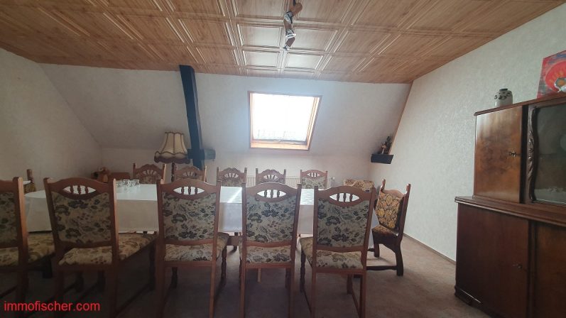 Das Anwesen wurde um 1920 teilweise in massiver und in Fachwerkbauweise errichtet. Das Haus bietet ausreichend Platz für eine Familie. Vor dem Neubezug sind jedoch Modernisierungen vor allem im Innenbereich notwendig. Besonders interessant ist das große Nebengelass, welches sich in einem guten Zustand befindet. Das gut geschnittene Grundstück bietet viele Möglichkeiten zur aktiven Freizeitgestaltung und Erholung.