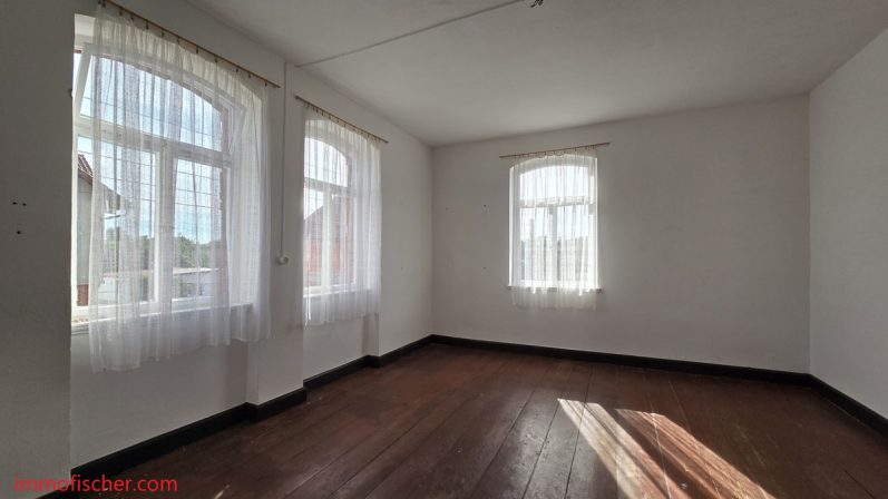 Das in massiver Bauweise errichtete Wohnhaus bietet mit seinen zwei Vollgeschossen und dem ausgebauten Mansardgeschoß viel Platz, auch für eine große Familie bzw. auch zum Wohnen und Arbeiten. Bei Bedarf ist auch eine Aufteilung in drei Wohneinheiten möglich. Vor einem Neubezug sind jedoch komplexe Modernisierungsarbeiten notwendig. Das kleine Nebengebäude und das ebene und gepflegte Grundstück bieten viele Möglichkeiten zur aktiven Freizeitgestaltung und Erholung.