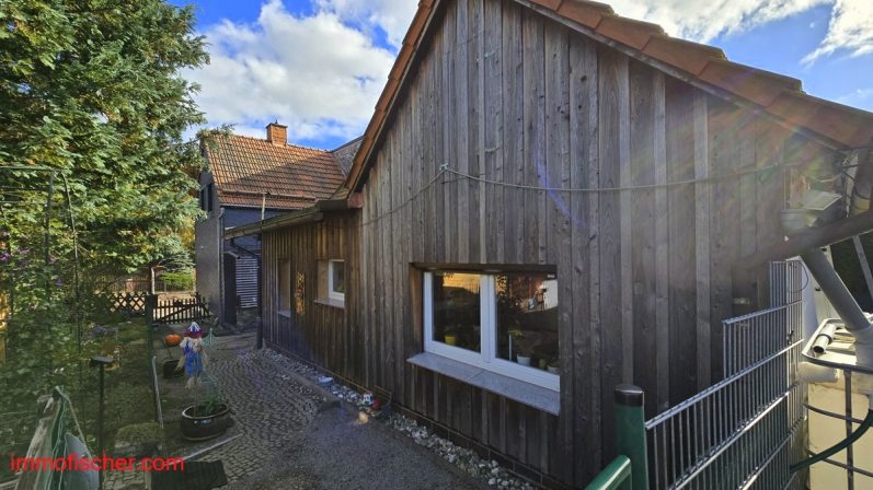 Das Einfamilienhaus wurde um 1920 in Fachwerkbauweise errichtet und später durch den Ausbau einer ehemaligen Werkstatt erweitert. Das Haus bietet Platz für zwei bis maximal drei Personen. In den vergangenen Jahren wurde das Haus laufend modernisiert, so dass kein größerer Sanierungsstau vorhanden ist. Das gepflegte Grundstück bietet viele Möglichkeiten für eine aktive Freizeitgestaltung und Erholung.
