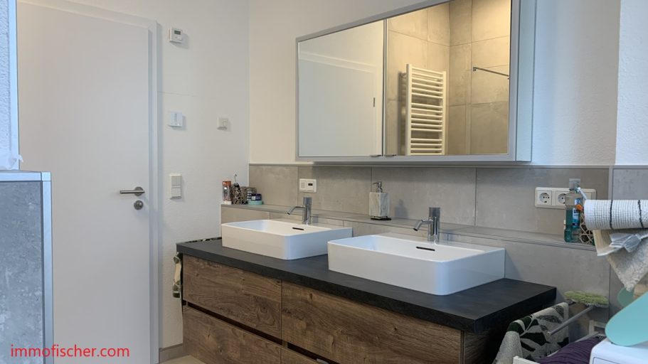 - modernes Bad mit Badmöbel und bodengleicher Dusche