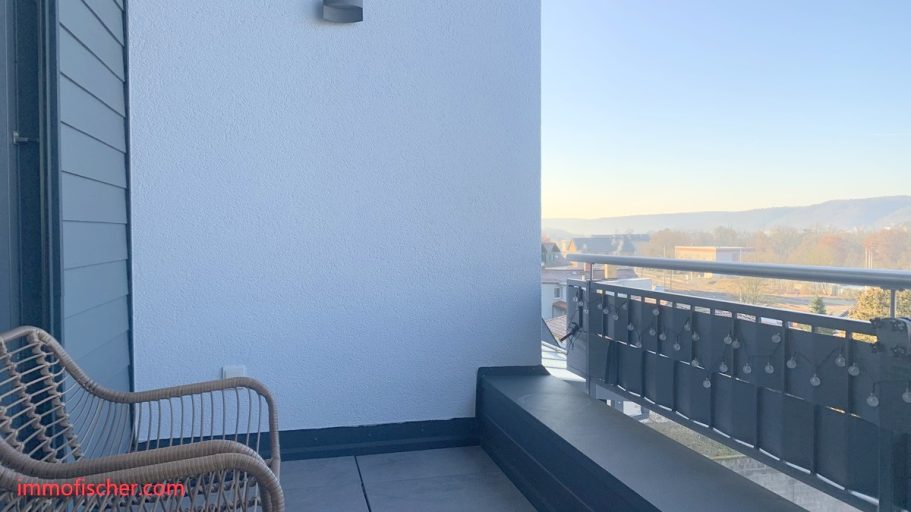 - großer Balkon mit Blick auf die Stadt