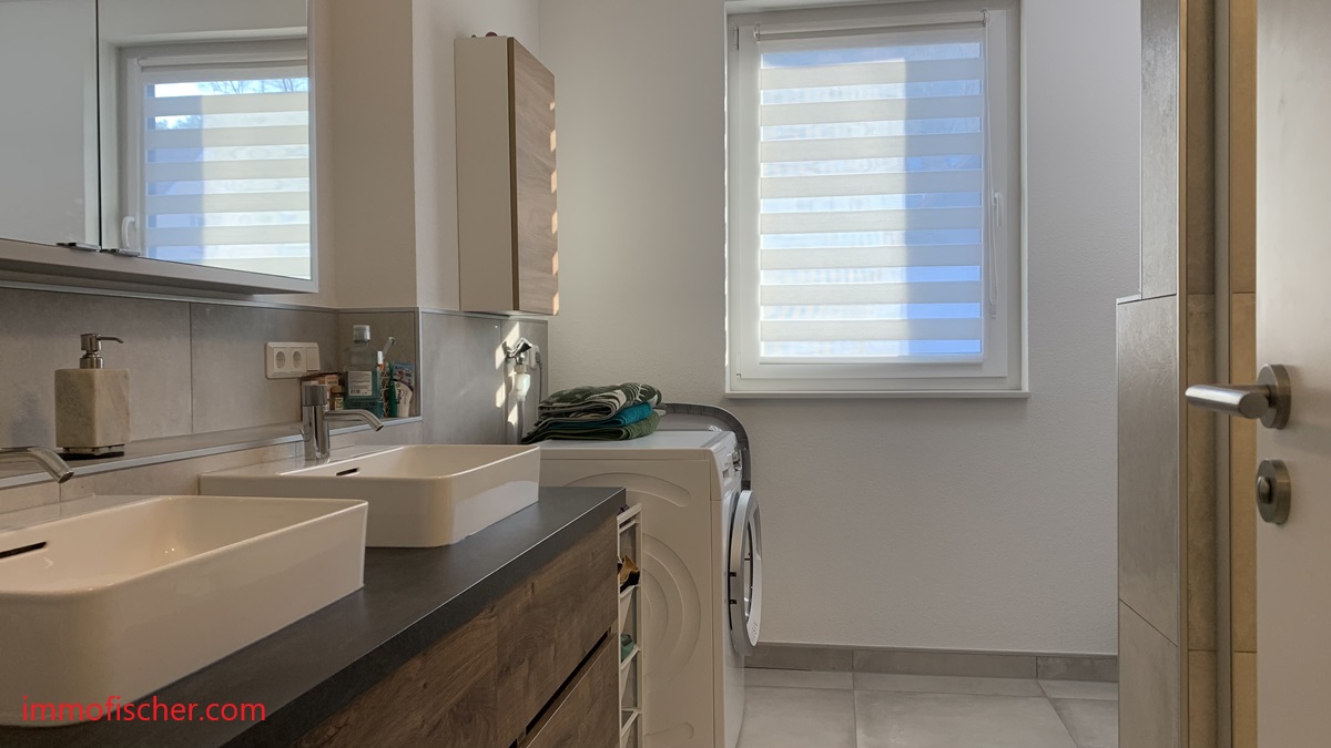- modernes Bad mit Badmöbel und bodengleicher Dusche
