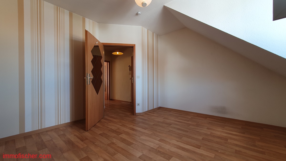 Die besonders helle Eigentumswohnung befindet sich im Dachgeschoß einer 1996 errichteten, gepflegten Eigentumswohnanlage auf der Ostseite der Stadt. Sie verfügt über eine moderne Raumaufteilung mit einem Wohnzimmer und offener Küche, einem Flur, einem Schlafzimmer sowie einem Bad mit Wanne und WC. Ein Abstellraum ist in der Wohnung und im Keller vorhanden. Die Wohnung ist mit einer modernen Einbauküche ausgestattet.