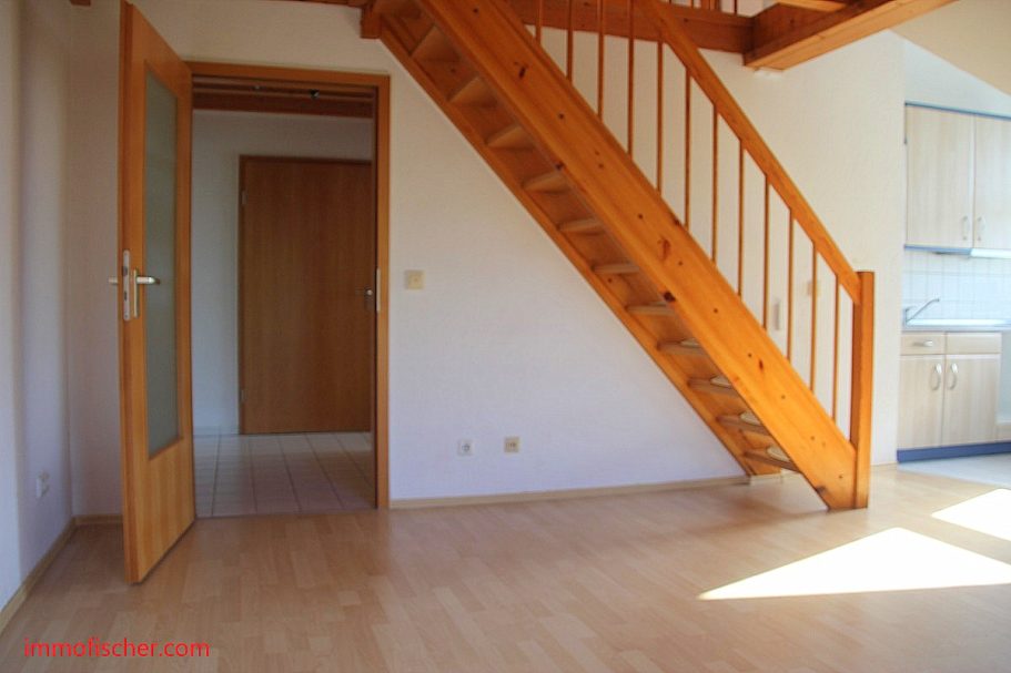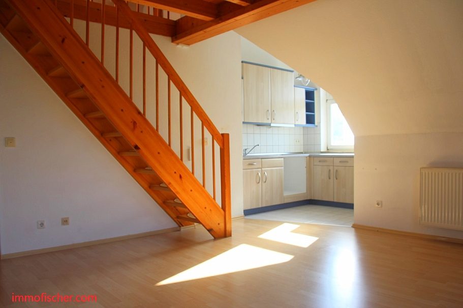 Die ruhig und sonnig gelegene Wohnung befindet sich im Dachgeschoß, einer 1997 errichteten Wohnanlage in der Südstadt. Mehrere Einkaufs- und Dienstleistungseinrichtungen sowie die Schule und ein Kindergarten befinden sich in der Nähe, das Stadtzentrum mit dem Marktplatz und der Fußgängerzone ist etwa 800 m entfernt. Die Wohnung verfügt über ein großes Wohnzimmer mit einem offenen Küchenbereich und einem Tagelichtbad mit Dusche. Eine Einbauküche sowie ein KfZ-Stellplatz sind in der Miete enthalten.