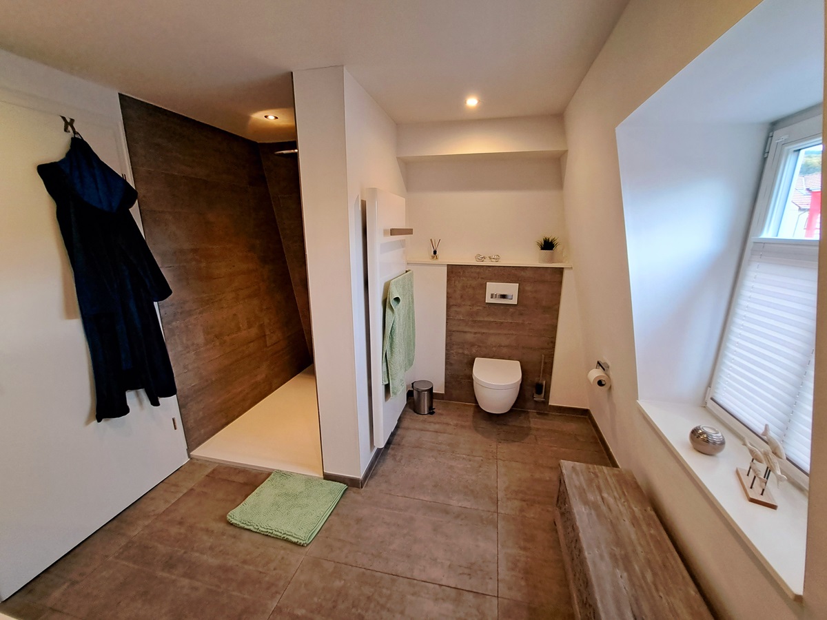 - Tageslichtbad mit ebener Dusche & Wanne sowie Gäste-WC
