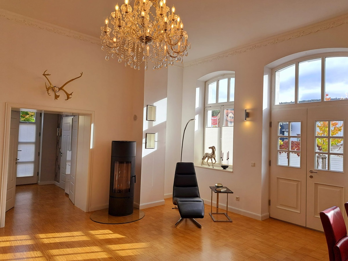 Die attraktive und denkmalgeschützte Villa befindet sich in unmittelbarer Nähe der Burg-Klinik mit kurzen Wegen zu einem Kindergarten, einer Schule und mehreren Einkaufsmöglichkeiten. Sie war einst Bestandteil der historischen Burganlage. Das Gebäude wurde in den vergangenen Jahren grundhaft sowie stilvoll saniert und verfügt über eine hochwertige Ausstattung. Im Mietpreis enthalten sind die neuwertige Einbauküche mit sämtlichen Markengeräten, Einbauschränken, ein Kaminofen, Badmöbel sowie eine Waschmaschine & ein Trockner. Besonders interessant ist das gepflegte Grundstück am Haus mit der Terrasse und der großen Garage. Die Kreisstadt Bad Salzungen ist ca. 12 km, Eisenach 36 km und das hessische Philippsthal 15 km entfernt.