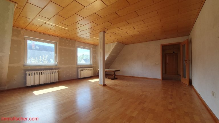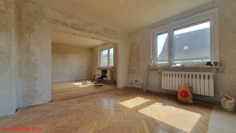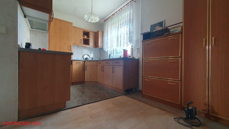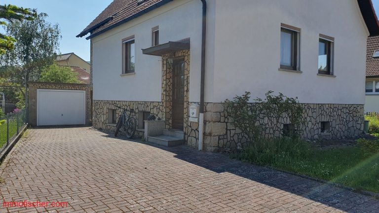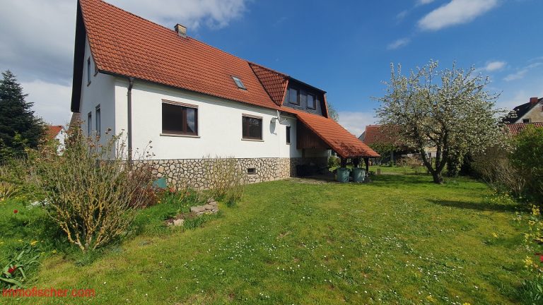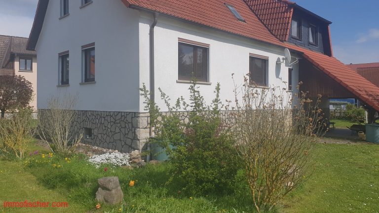 Das freistehende Wohnhaus wurde um 1960 in massiver Bauweise errichtet und 1998 um einen Anbau auf der Südostseite erweitert und aufgestockt. Es verfügt über eine zweckmäßige Raumaufteilung mit großen und hellen Zimmern. Vor dem Neubezug sind Modernisierungen, insbesondere im Bereich Heizung und Innenausbau notwendig. Ein modernes Bad wurde im Erdgeschoß bereits geschaffen. Die Fenster (Kunststoff) wurden zum überwiegenden Teil erneuert. Eine Garage und ein 1998 errichtetes Carport sind ebenso vorhanden. Das Haus ist bereits freigezogen und kann vom Käufer kurzfristig genutzt werden. Besonders interessant ist das ebene und gut geschnittene Grundstück.