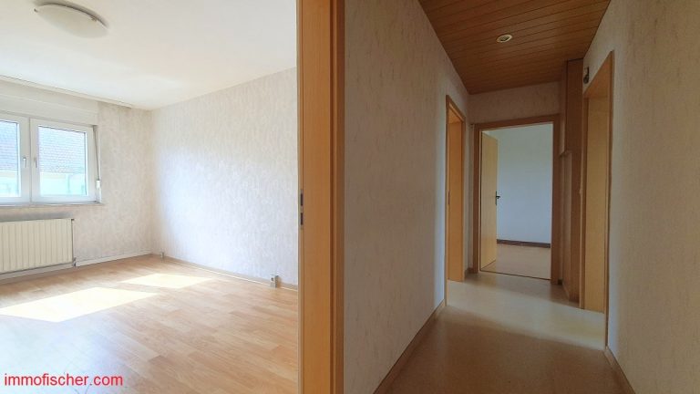 Die gut geschnittene und helle Wohnung befindet sich im 1. Obergeschoß eines kleinen Mehrfamilienhauses mit insgesamt sechs Wohnungen, davon überwiegend Selbstnutzer. Zur Zeit steht die Wohnung leer, somit ist sie auch für Eigennutzer interessant. Vor einem Neubezug sind jedoch Renovierungsarbeiten (Fussbodenbelag, Maler-und Tapezierarbeiten, Innentüren etc.) notwendig. Zur Wohnung gehören ein großer Kellerraum und eine Garage. Besonders interessant ist das recht große Grundstück mit dem Garten und der gemeinschaftlich zu nutzenden Terrasse.