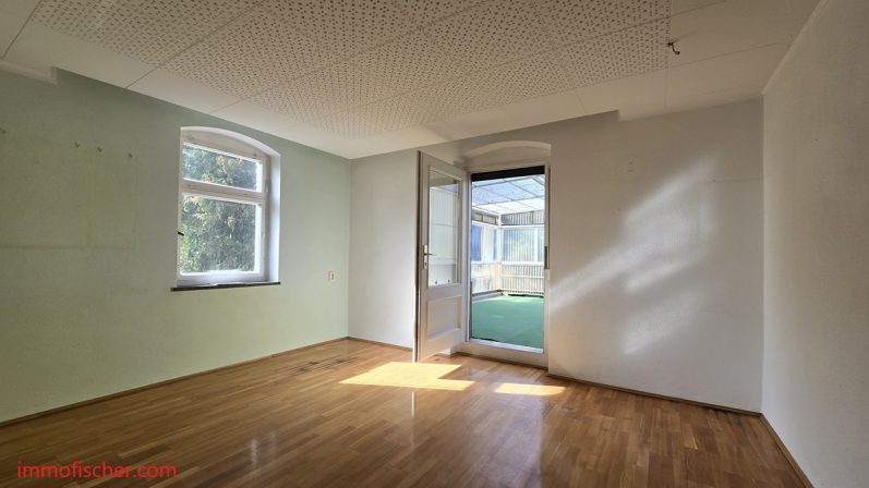 Das in massiver Bauweise errichtete Wohnhaus bietet mit seinen zwei Vollgeschossen und dem ausgebauten Mansardgeschoß viel Platz, auch für eine große Familie bzw. auch zum Wohnen und Arbeiten. Bei Bedarf ist auch eine Aufteilung in drei Wohneinheiten möglich. Vor einem Neubezug sind jedoch komplexe Modernisierungsarbeiten notwendig. Das kleine Nebengebäude und das ebene und gepflegte Grundstück bieten viele Möglichkeiten zur aktiven Freizeitgestaltung und Erholung.