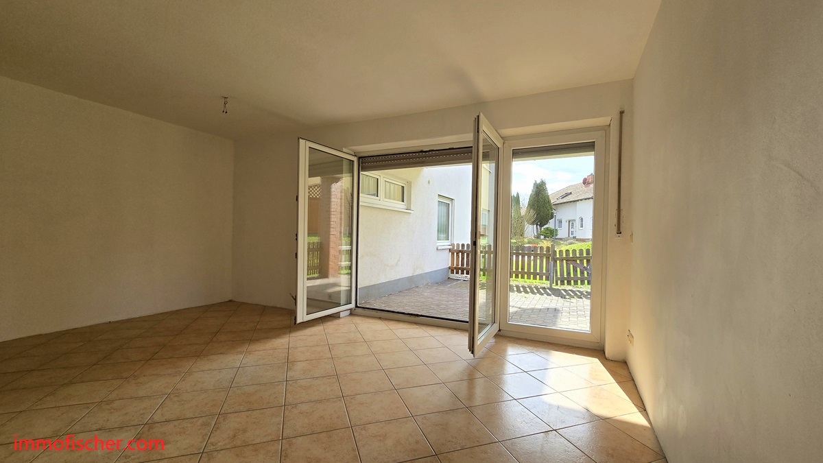 Die helle Wohnung befindet sich im Erdgeschoß eines kleinen Mehrfamilienhauses. Sie verfügt über eine moderne Raumaufteilung mit einem großen Wohnzimmer mit Terrasse, einem Schlaf-, einem Kinderzimmer, einem großen Tageslichtbad mit Wanne sowie einer Wohnküche. Ein Abstellraum ist sowohl in der Wohnung, als auch im Keller vorhanden. Die Wohnung steht bereits leer und ist somit auch für Eigennutzer interessant. Vor einem Neubezug ist eine Renovierung der Wohnung erforderlich. Interessant ist die ebene und überdachte Terrasse auf der Südwestseite. Zur Wohnung gehören zwei Kfz-Stellplätze.